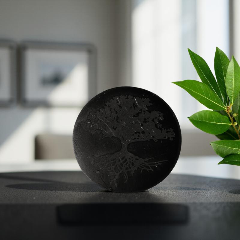 Sur le plan physique. En raison de sa structure particulière, la Shungite possède un certain nombre de propriétés surprenantes physiques, chimiques et bioénergétiques. La Shungite offre une protection contre les fréquences électromagnétiques émises par les téléphones cellulaires, les ordinateurs et les autres appareils électroniques. Cette pierre convient bien pour vous aider à vous débarrasser des toxines et de tout ce qui nuit à votre corps physique. . La Schungite peut neutraliser des zones de brouillage électromagnétiques et aussi compenser ces interférences chez les humains. Le processus de vieillissement est considérablement retardé, le système immunitaire est renforcé, ainsi que la beauté et la vitalité. La moléculaire fullerènes combat les radicaux libres, sont antioxydants et purifient le corps.