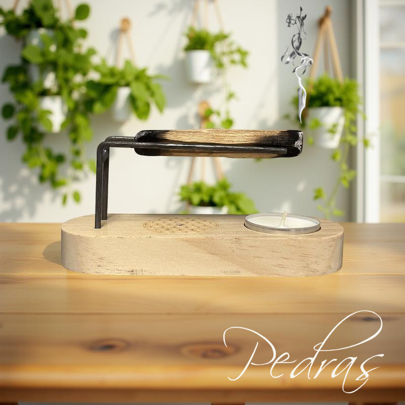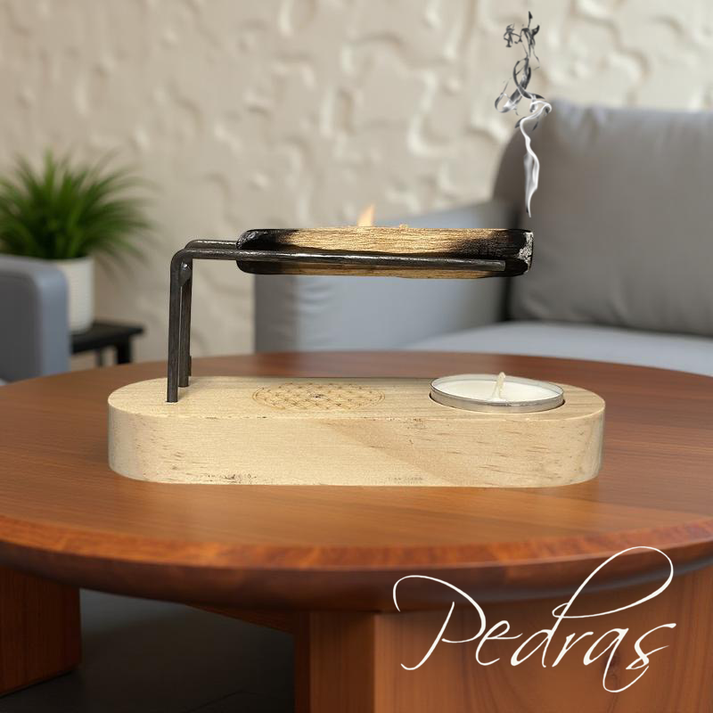 Brûleur en pin, orné d'une élégante fleur de vie, spécialement conçu pour accompagner vos moments de purification et de méditation avec le Palo Santo. Fabriqué à partir de bois de pin, ce brûleur allie esthétique et fonctionnalité.