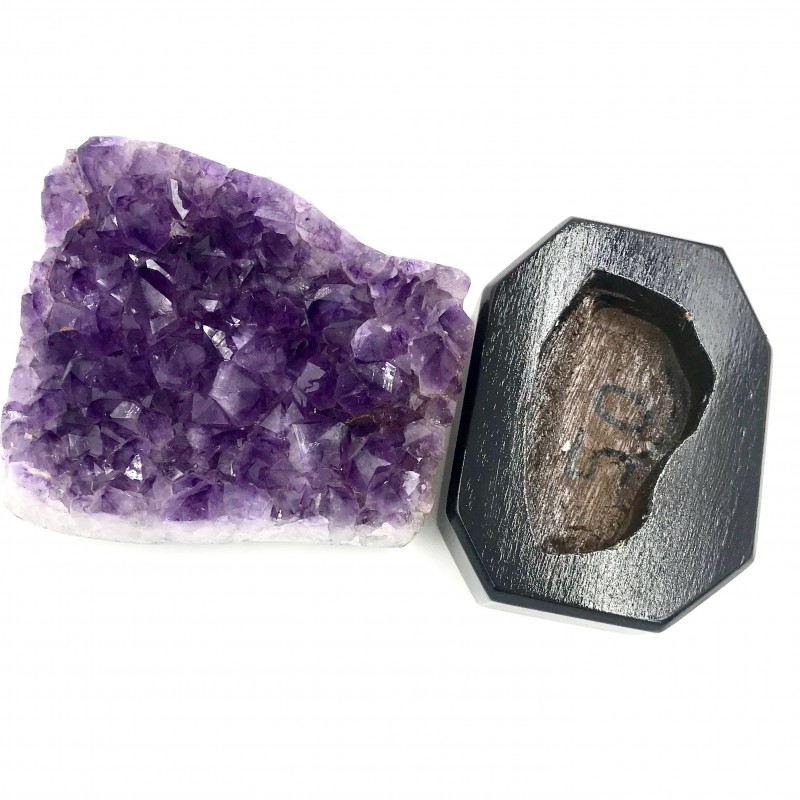 Druse de Améthyste du Brésil avec ça base en bois.