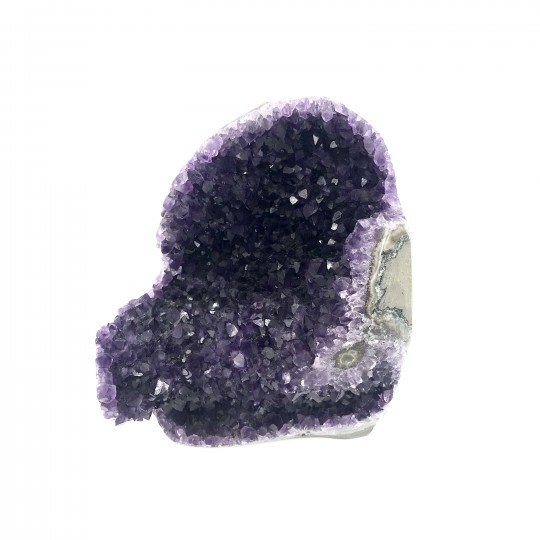 Belo Géodo de Ametista do UruguayNo nível mental. A vibração roxa da ametista é dotada de poderosas qualidades transformadoras. Para usar essa vibração com o propósito de transformar situações indesejadas, imagine que você está cercado por uma bolha vibrante e brilhante de luz roxa que emana da pedra. Enquanto você imagina, saiba que tudo o que o perturba ou lhe causa problemas está sendo transformado e transmutado em algo poderoso. Imagine a situação mudando para o que você deseja de onde está agora. A vibração da sua imaginação, dependendo do que você deseja que a sua vida combine com a luz roxa, afetará as mudanças.No nível emocional. Quando você percebe que suas emoções precisam ser transformadas ou drasticamente alteradas, a energia violeta da ametista lhe dá a força e os recursos para efetuar a mudança. Imagine estar cercado pela energia roxa desta pedra enquanto se concentra em como gostaria de se sentir.No nível físico. Como a ametista deriva seu nome da palavra grega amethystos, que significa “não bêbado” ou “não embriagado”, carregue ou use esta pedra para lembrar de evitar distrações prejudiciais e mudar hábitos antigos. intenção consciente. A associação com a embriaguez é inspirada em um mito romano que envolve Baco, o deus romano do vinho e da embriaguez. Cada vez que você toca a pedra ou olha para ela, imagine sua nova realidade como se esse velho hábito fosse uma memória distante. Como seria sua vida sem esse hábito? Aproveite o tempo para imaginar.