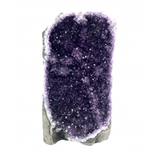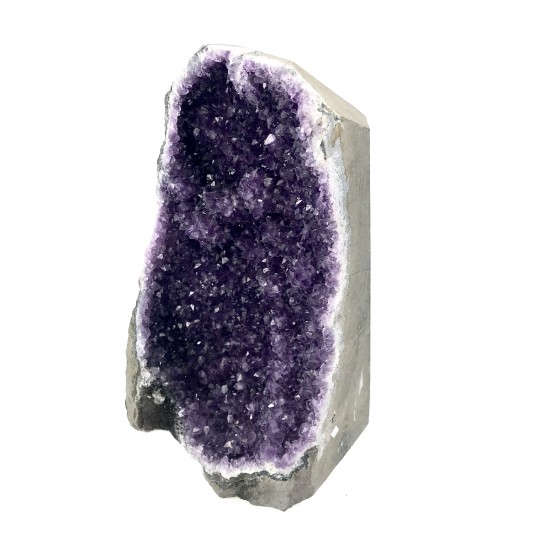 Bela Peça de Ametista do Uruguay qualidade extraNo nível mental. A vibração roxa da ametista é dotada de poderosas qualidades transformadoras. Para usar essa vibração com o propósito de transformar situações indesejadas, imagine que você está cercado por uma bolha vibrante e brilhante de luz roxa que emana da pedra. Enquanto você imagina, saiba que tudo o que o perturba ou lhe causa problemas está sendo transformado e transmutado em algo poderoso. Imagine a situação mudando para o que você deseja de onde está agora. A vibração da sua imaginação, dependendo do que você deseja que a sua vida combine com a luz roxa, afetará as mudanças.No nível emocional. Quando você percebe que suas emoções precisam ser transformadas ou drasticamente alteradas, a energia violeta da ametista lhe dá a força e os recursos para efetuar a mudança. Imagine estar cercado pela energia roxa desta pedra enquanto se concentra em como gostaria de se sentir.No nível físico. Como a ametista deriva seu nome da palavra grega amethystos, que significa “não bêbado” ou “não embriagado”, carregue ou use esta pedra para lembrar de evitar distrações prejudiciais e mudar hábitos antigos. intenção consciente. A associação com a embriaguez é inspirada em um mito romano que envolve Baco, o deus romano do vinho e da embriaguez. Cada vez que você toca a pedra ou olha para ela, imagine sua nova realidade como se esse velho hábito fosse uma memória distante. Como seria sua vida sem esse hábito? Aproveite o tempo para imaginar.