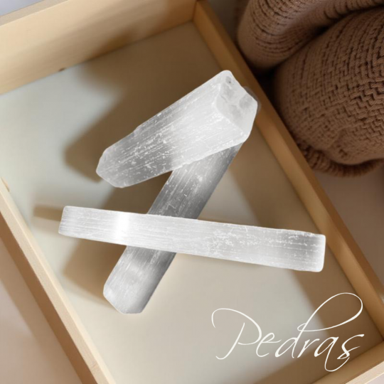 SelenitaEm um nível mental. A Selenita fornece clareza mental e ajuda você a permanecer no curso. É uma pedra estabilizadora que mantém seus pensamentos focados em sua intenção. Com esta pedra em mãos, permita que sua natureza intuitiva se funda com sua inteligência, mesclando conhecimento com sabedoria espiritual.Em um nível emocional. A Selenita é um lembrete de que você está espiritual, fisicamente e mentalmente alinhado. É fácil manter suas emoções em equilíbrio. Esta pedra ajuda você a se desligar do drama, permitindo que você compreenda melhor as pessoas e as situações. Use esta pedra como uma varinha mágica de amor, luz e bondade para ajudar a dissipar quaisquer sentimentos de inferioridade, ciúme, dúvida, medo ou qualquer tipo de negatividade.No nível físico. A Selenita é ótimo para massoterapeutas, quiropráticos e terapeutas – eles podem usá-lo para ampliar os benefícios de seu tratamento. Essa pedra também auxilia no cuidado de músculos, ossos, nervos e tendões, ajudando a fortalecer sua estrutura física básica. As qualidades protetoras do selenito e sua capacidade de alinhá-lo apenas para o bem de todos os envolvidos ajudam a manter as vibrações amorosas quando colocado na entrada de sua casa (por dentro e por fora).