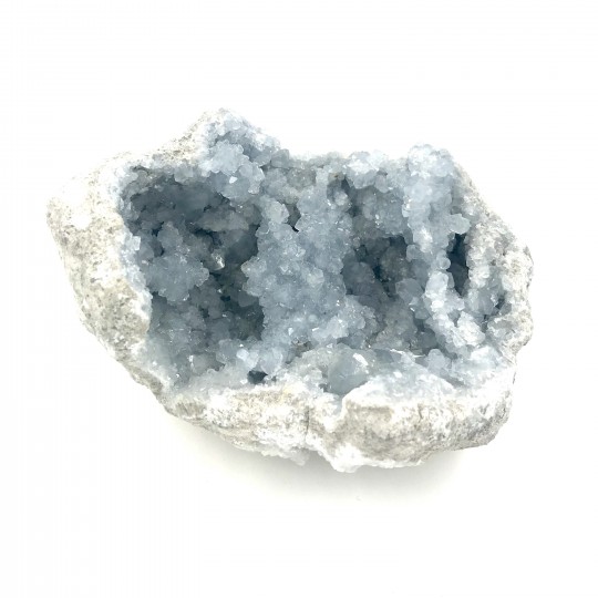 Celestina azul Celestinal brutoEm um nível mental. Celestina pode participar ativamente com a intenção de acalmar a tagarelice incessante da mente. Proporcionando uma sensação de serenidade, esta pedra é benéfica para aqueles momentos em que muita coisa está acontecendo ao mesmo tempo e você precisa recuperar o foco mental. Uma pedra atraente, é uma ótima ideia mantê-la sobre sua mesa de trabalho para evitar a sobrecarga de papéis e coisas do gênero.Em um nível emocional. Celestina acalma emoções turbulentas. Em tempos de turbulência emocional, a vibração azul pastel infunde uma sensação de paz e conforto. Esta pedra pode ajudá-lo a se consolar quando a dor o oprime e o lembra de se conectar com a Mãe Divina que o embala em seus braços enquanto você libera suas emoções, seus sentimentos e talvez suas lágrimas para aliviar sua dor.No nível físico. Celestina ajuda você a estar verdadeiramente presente em seu corpo enquanto se conecta ao mundo espiritual. Use esta pedra para ajudá-lo a se sincronizar com o reino maior. Se você se encontra em um negócio visionário como uma butique New Age, um praticante metafísico, um artista visionário ou qualquer outro negócio espiritual, mantenha esta pedra por perto. Também é útil se você dirige uma empresa consciente, comprometida com a integração da espiritualidade e da ética nas práticas de negócios. Isso o ajuda a ser sempre próspero enquanto presta serviço consciente ou espiritual.