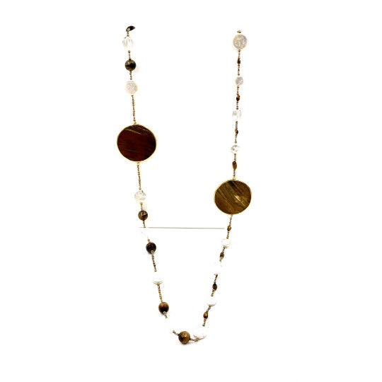 Composto de superbas pedras de Olho de Tigre, Perolas e Cristal de Rocha.