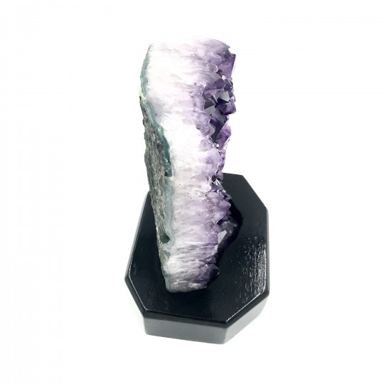 Drusa de Ametista do Brasil com base de madeiraNo nível mental. A vibração roxa da ametista é dotada de poderosas qualidades transformadoras. Para usar essa vibração com o propósito de transformar situações indesejadas, imagine que você está cercado por uma bolha vibrante e brilhante de luz roxa que emana da pedra. Enquanto você imagina, saiba que tudo o que o perturba ou lhe causa problemas está sendo transformado e transmutado em algo poderoso. Imagine a situação mudando para o que você deseja de onde está agora. A vibração da sua imaginação, dependendo do que você deseja que a sua vida combine com a luz roxa, afetará as mudanças.No nível emocional. Quando você percebe que suas emoções precisam ser transformadas ou drasticamente alteradas, a energia violeta da ametista lhe dá a força e os recursos para efetuar a mudança. Imagine estar cercado pela energia roxa desta pedra enquanto se concentra em como gostaria de se sentir.No nível físico. Como a ametista deriva seu nome da palavra grega amethystos, que significa “não bêbado” ou “não embriagado”, carregue ou use esta pedra para lembrar de evitar distrações prejudiciais e mudar hábitos antigos. intenção consciente. A associação com a embriaguez é inspirada em um mito romano que envolve Baco, o deus romano do vinho e da embriaguez. Cada vez que você toca a pedra ou olha para ela, imagine sua nova realidade como se esse velho hábito fosse uma memória distante. Como seria sua vida sem esse hábito? Aproveite o tempo para imaginar.