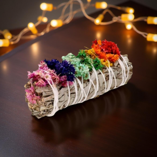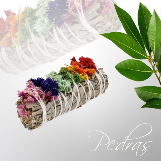 Sálvia com VerbascoSálvia Branca É uma planta aromática nativa da América do Norte, usada há séculos pelos nativos americanos por suas propriedades medicinais e espirituais. É frequentemente usado em práticas de purificação e limpeza de energia para remover energias negativas e trazer paz e serenidade.Verbascos, também conhecido como “vela de prata”, é uma planta medicinal que cresce em regiões temperadas em todo o mundo. As folhas e flores de Verbasco são frequentemente usadas para aliviar problemas respiratórios, como tosse e asma.Juntos, o Sábio Branco e o Verbasco são usados para criar uma sinergia aromática e espiritual única. A sálvia branca é frequentemente queimada na forma de paus de incenso para purificar o ar e o ambiente, enquanto o verbasco é usado para acalmar as vias aéreas e promover o relaxamento.