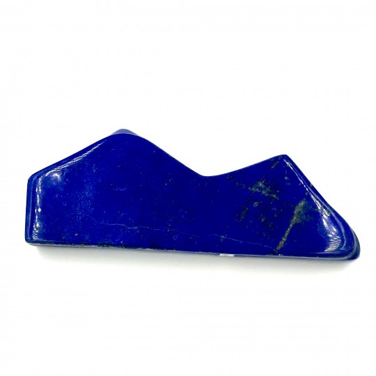 Bela peça de lápis-lazúli polido.Em um nível mental. O lápis-lazúli é uma pedra estabilizadora que ajuda você a se concentrar em seus estudos. Ele melhora seu foco e atenção e pode ser usado durante o teste para se alinhar com o conhecimento superior disponível para todos. Esta pedra é particularmente benéfica para a integração de disciplinas científicas mais complexas do ensino superior.Em um nível emocional. A vibração azul profunda do lápis-lazúli acalma os sentimentos de frustração, inquietação e raiva. Com esta pedra em mãos, você pode encontrar maneiras de lidar com a turbulência emocional resultante do abuso físico, mental e emocional – a fim de se curar e encontrar paz interior. A energia calmante do lápis-lazúli é útil para questões relacionadas ao trabalho infantil interno, vícios de álcool e drogas, bem como vício em sexo. A cor azul profunda desta pedra ajuda a curar a raiva e a raiva.No nível físico. Como todas as pedras que carregam energia azul escura, o lápis-lazúli pode ajudar a acalmar a inflamação. A vibração de resfriamento do azul escuro reduz os efeitos de doenças inflamatórias. Use esta pedra após a cirurgia ou durante a cicatrização de uma entorse ou de um músculo ou ligamento tenso ou rompido. Quando usada em conjunto com a intenção consciente, esta pedra também melhora a visão. Visto que calcita, sodalita e pirita são freqüentemente encontradas em lápis-lazúli, consulte as páginas dedicadas a cada uma dessas pedras para entender melhor essa gema.
