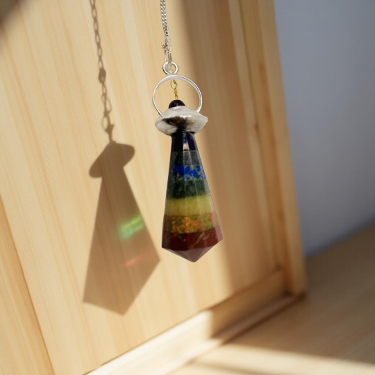 Pêndulo e os chakrasO pêndulo, na sua função espiritual, também é um excelente instrumento para limpar e energizar os chakras, promovendo seu equilíbrio. Seu trabalho é nivelar os chakras e estabilizar nossa saúde global, que pode ser afetada por sobrecarga de energias negativas.Basicamente, seguramos o pêndulo sobre cada um dos chakras e, então, ele indicará se existe ali um desbalanço – de acordo com a forma como ele se move. No próximo tópico, detalharemos melhor como fazer o uso do pêndulo também em outras aplicações desse instrumento.Como os pêndulos funcionam?Os pêndulos são sistemas mecânicos que funcionam por meio de movimentos oscilatórios, dependendo apenas da gravidade e da força que mantêm seu eixo fixo. Para o uso espiritual, essa ação é importante porque, dessa forma, a única coisa capaz de mover esses instrumentos é a energia que circula no ambiente.Por esse motivo, os pêndulos conseguem captar as vibrações energéticas, funcionando como oráculos (para adivinhações) ou condutores/alinhadores de energia (no caso de curas espirituais), já que sua massa puntiforme aponta para onde a energia precisa ser reequilibrada ou para a resposta correta a um questionamento.O pêndulo na radiestesiaA radiestesia é pseudociência que mede e pesquisa campos energéticos. Segundo essa prática, podemos captar energias emitidas por todos os objetos. Um dos usos dessa prática milenar é encontrar água, minerais ou objetos perdidos.Além disso, a radiestesia ajuda a analisar as energias de um ambiente, já que considera que tudo no Universo tem um campo vibracional. E, com base nessa lógica, também é capaz de identificar as energias de seres visíveis e invisíveis, conectando-nos com nossos mentores espirituais.Nas práticas de radiestesia, o pêndulo é um instrumento essencial. Há, inclusive, vários tipos dele, como o pêndulo egípcio, o testemunho, o de cone virtual (ou cromático), o universal, o hebreu (ou cabalístico), o de Turenne e os comuns. Cada um tem uma aplicação, como medição de índice de vitalidade, medição de ondas astrais e detecção de desequilíbrios espirituais, mentais, físicos ou ambientais.
