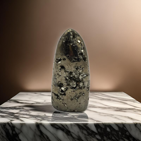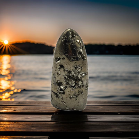 Pirita balaEm um nível mental. A vibração dourada da pirita ajuda você a se lembrar de sua magnificência. Você é poderoso – use esta pedra preciosa para se lembrar de quem você realmente é e observe sua auto-estima aumentar. Crescendo na forma de blocos, essa pedra possui a capacidade inerente de fornecer uma base sólida para melhorar algumas de suas crenças fundamentais sobre si mesmo.Em um nível emocional. Pirita ajuda a criar coragem e autoconfiança. Use esta pedra quando precisar de coragem para definir limites e se defender. Ajuda você a sentir seu poder. Esta gema dourada oferece a oportunidade de permitir a reflexão e o desenvolvimento de suas qualidades positivas.No nível físico. A pirita é uma pedra de abundância financeira. Use-o com intenção ao tentar melhorar sua situação financeira. Inspire-se em sua energia dourada ao agir para aumentar sua riqueza financeira. Esta pedra também o protege fisicamente, desviando energia ou situações negativas.