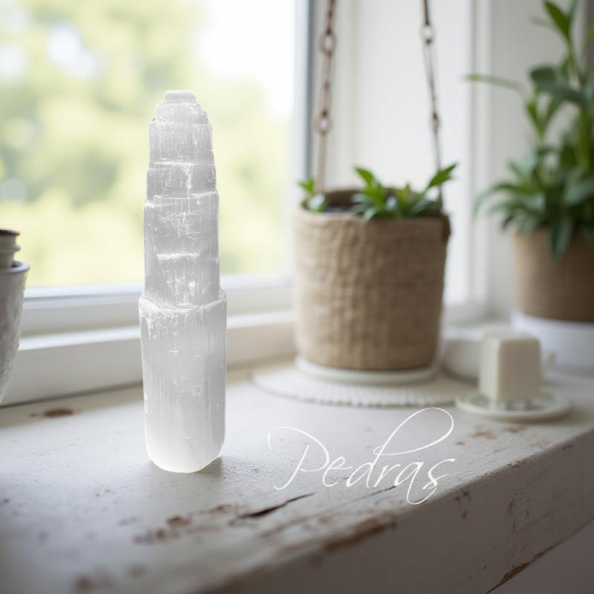 Em um nível mental. A Selenita fornece clareza mental e ajuda você a permanecer no curso. É uma pedra estabilizadora que mantém seus pensamentos focados em sua intenção. Com esta pedra em mãos, permita que sua natureza intuitiva se funda com sua inteligência, mesclando conhecimento com sabedoria espiritual.Em um nível emocional. A Selenita é um lembrete de que você está espiritual, fisicamente e mentalmente alinhado. É fácil manter suas emoções em equilíbrio. Esta pedra ajuda você a se desligar do drama, permitindo que você compreenda melhor as pessoas e as situações. Use esta pedra como uma varinha mágica de amor, luz e bondade para ajudar a dissipar quaisquer sentimentos de inferioridade, ciúme, dúvida, medo ou qualquer tipo de negatividade.No nível físico. A Selenita é ótimo para massoterapeutas, quiropráticos e terapeutas – eles podem usá-lo para ampliar os benefícios de seu tratamento. Essa pedra também auxilia no cuidado de músculos, ossos, nervos e tendões, ajudando a fortalecer sua estrutura física básica. As qualidades protetoras do selenito e sua capacidade de alinhá-lo apenas para o bem de todos os envolvidos ajudam a manter as vibrações amorosas quando colocado na entrada de sua casa (por dentro e por fora).