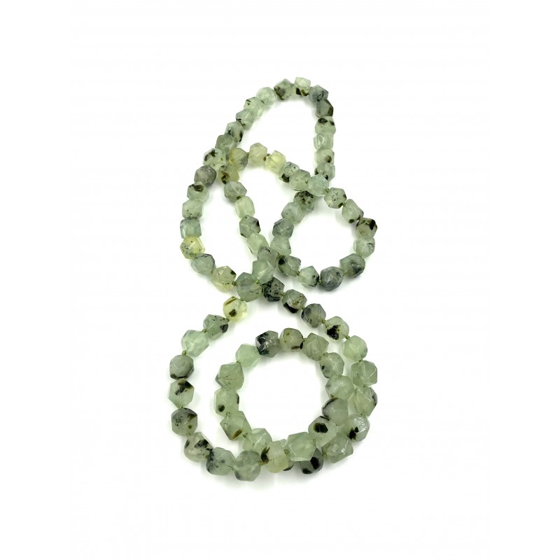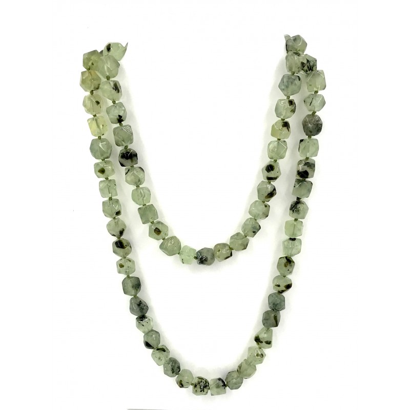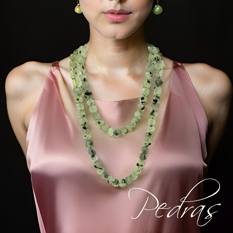 Composto por magníficas pedras de frenite, este colar com pedras em formas irregulares de cerca de 14 mm leva-o numa viagem pelo esplendor das pérolas verdes. Este colar está disponível em um colar longo.