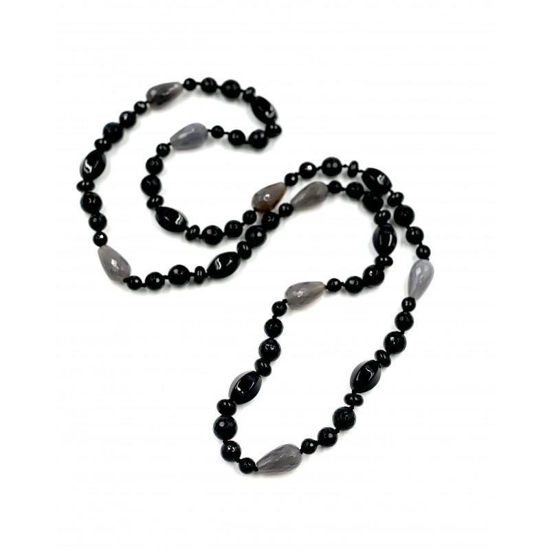 Composto por magníficas pedras de de Ágata negras e Ágatas cinzas em 6 tamanhos diferentes leva você a uma viagem pelo esplendor das pérolas negras.