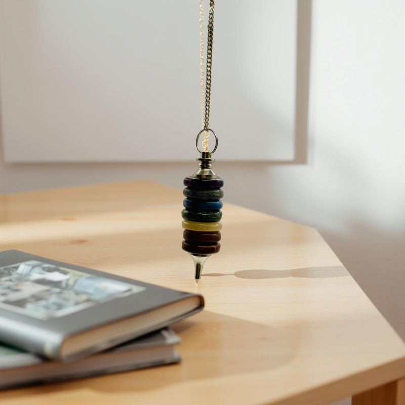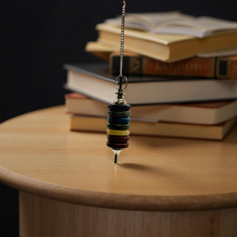 O pêndulo, na sua função espiritual, também é um excelente instrumento para limpar e energizar os chakras, promovendo seu equilíbrio. Seu trabalho é nivelar os chakras e estabilizar nossa saúde global, que pode ser afetada por sobrecarga de energias negativas.