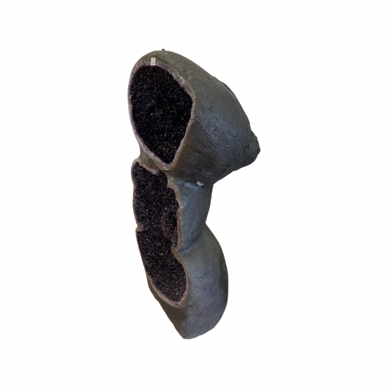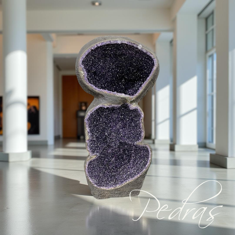 Uma elegante ametista para acrescentar beleza e cor à sua residência ou escritório. Seus padrões de cristal são ímpares e sua forma única será um ponto de destaque em qualquer ambiente.