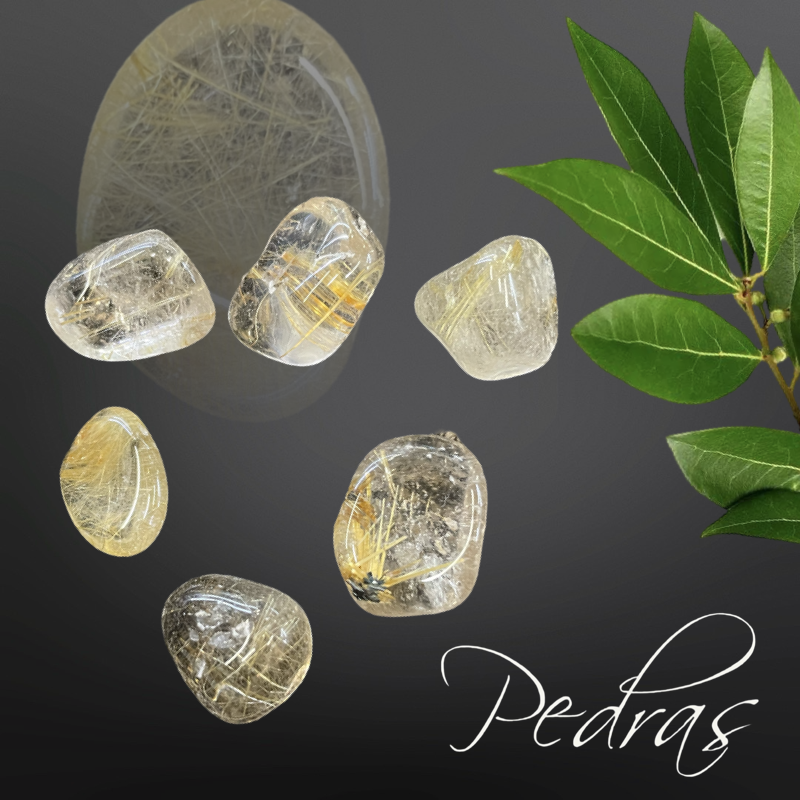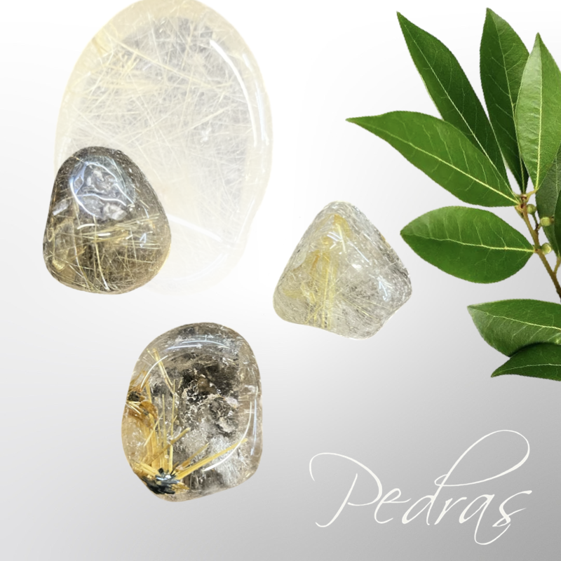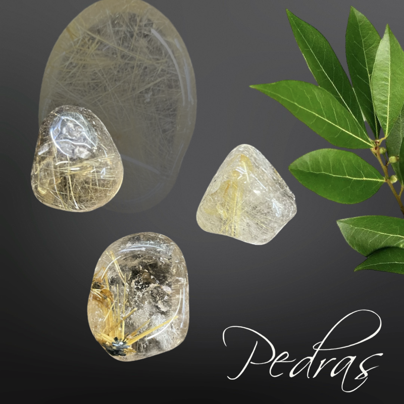 Pedras roladas de quartzo rutilado