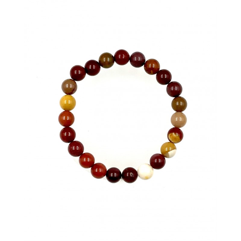 Em um nível emocional. O Jaspe Mookaïts é encontrado em leitos de riachos. Como tal, ele contém inerentemente a vibração de acesso sob a superfície aquosa de suas emoções para acessar as questões básicas que causam turbulência emocional. Esta pedra vem em uma variedade de combinações de cores. Nesta pedra, especificamente, o amarelo está associado ao chakra do plexo solar e ao seu foco na auto-estima, na autoconfiança e na coragem de ser tudo o que você pode ser.